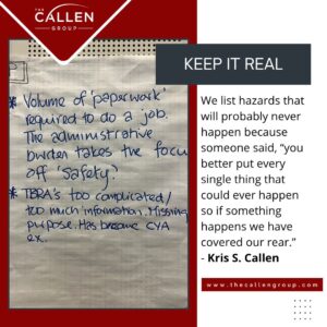“It isn’t just about safety or operations, but an effective high-performance culture that leads to safe and efficient operations” says owner Kris Callen. “The Callen Group keeps it simple, real and personal. We work to develop not only technical aspects of a safety system, but also the philosophy behind it.”
