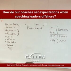 Callen Group Coach, Jason White facilitating a STAR Drill during a coaching moment with a Section Leader from the West Phoenix semi-submersible rig in Norway while the rig is in the shipyard undergoing planned maintenance.